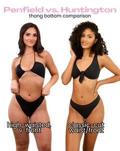 our suits are 2 layers of fabric just like any other swimwear; it's just bonded, not sewn with tight seams. so while it may appear to be thinner, it is actually the same thickness of material as most traditional swim. so if you're worried about a case of 🐫toe, while we can't guarantee our suits are frontal-wedgie-free, so-to-speak as every person's body is different...we can say that there is no reason why our suits would cause it more than any other swimwear. if you're ever worried about anything showing through, a general swim tip is to opt for a darker color or a suit in a pattern.