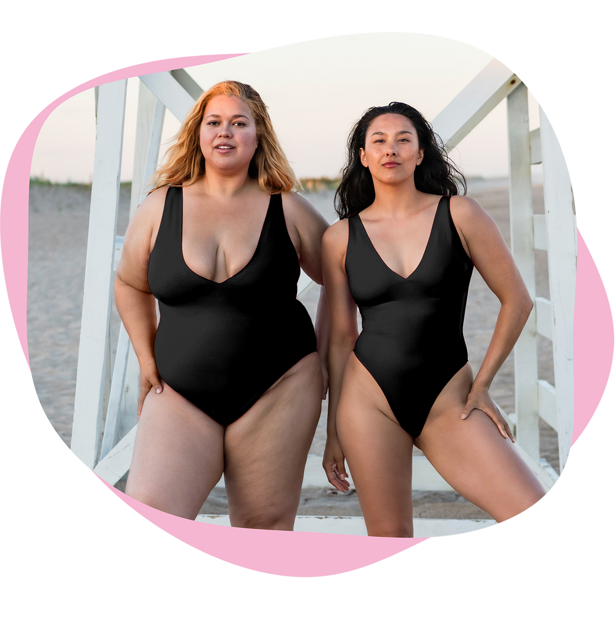 we offer lots of content of our swim on different bodies all over our site + socials! Namely, we have a onewith wearer gallery all of our product pages, our ‘plus size’, ‘try-ons’, ‘customers’, and fuller bust’ highlights on Instagram, the coverage/support meter on product pages,, size guide page, and more! we have so much content with lots of different representation.