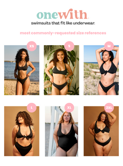 we offer lots of content of our swim on different bodies all over our site + socials! Namely, we have a onewith wearer gallery all of our product pages, our ‘plus size’, ‘try-ons’, ‘customers’, and fuller bust’ highlights on Instagram, the coverage/support meter on product pages,, size guide page, and more! we have so much content with lots of different representation.