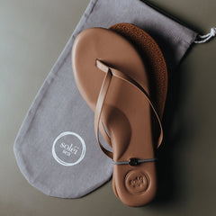 Enjoy the comfort of padded straps, footbed, and arch support, and the functionality of our water-resistant vegan leather & flexible non-slip rubber bottoms with our signature Soléi embossed waves.