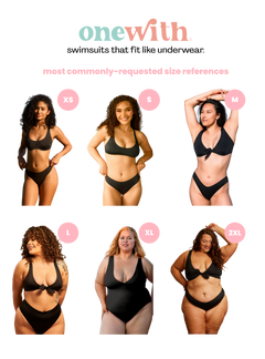 we offer lots of content of our swim on different bodies all over our site + socials! Namely, we have a onewith wearer gallery all of our product pages, our ‘plus size’, ‘try-ons’, ‘customers’, and fuller bust’ highlights on Instagram, the coverage/support meter on product pages,, size guide page, and more! we have so much content with lots of different representation.